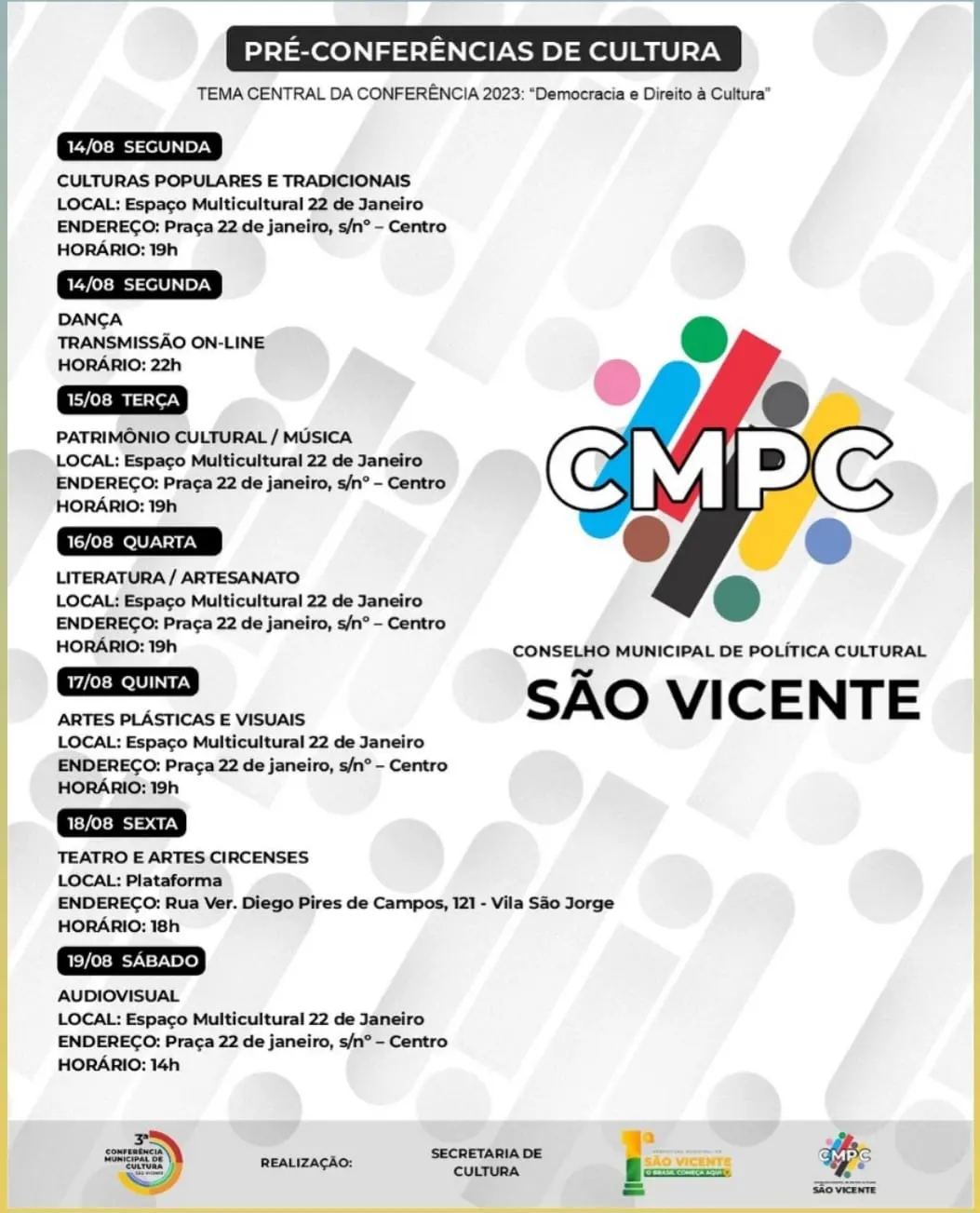 Não deixe de participar das pré conferências de Cultura da nossa cidade.