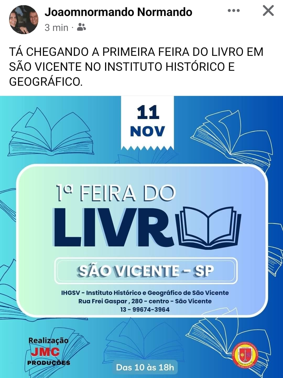 Esta chegando a Primeira feira do Livro em SV. Em nosso Instituto Histórico.